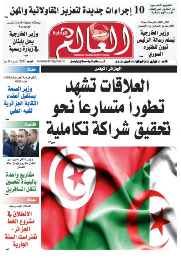 العالم الجزائري صحيفة يومية إخبارية وطنية متخصصة