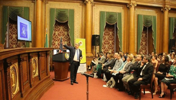 كما كانت هذه التظاهرة، التي شارك فيها الناطق عن مجلس نيويورك و كذا اطارات سامية جزائرية مقيمة بالولايات المتحدة، فرصة لتكريم السيد ايريك ادامس رئيس بلدية بروكلين نظير جهوده و التزاماته لفائدة الجالية الجزائرية.