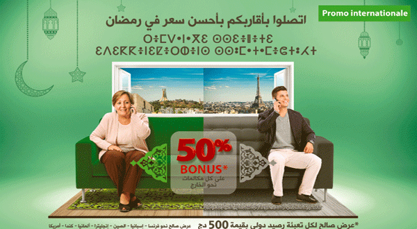 من أجل تقريب العائلات عبر ربوع العالم ،يطلق موبيليس خلال الشهر الفضيل ،عرضاً ترويجياً على المكالمات الدولية ،يسمح بالاتصال نحو الخارج بأقل تكلفة. و عليه ،سيتمكن زبائن الدفع المسبق موبيليس ،من الاستفادة من 50 % رصيد إضافي مهدى ،بقيمة 250 دج على كل تعبئة عبر: – بطاقة التعبئة الدولية بقيمة 500 دج – خدمة أرسلي الدولية بقيمة 500 دج أو – شراء “العرض الدولي” بقيمة 500 دج ،باستعمال اللائحة *600#. الرصيد الإضافي المهدى صالح لمدة شهر إبتداءًا من يوم التعبئة ،نحو الثابت و النقال لبعض الوجهات مثل : فرنسا ،اسبانيا ،ايطاليا ،بريطانيا ،الولايات المتحدة الأمريكية ،كندا ،الصين ،الهند ،المغرب و تركيا . إستمتعوا ! رمضان كريم.