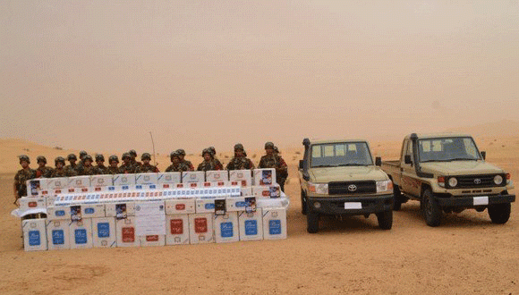 وأوضح ذات المصدر أنه “في إطار محاربة التهريب والجريمة المنظمة، ضبطت مفرزة للجيش الوطني الشعبي، يوم 10 جوان 2018 بالوادي (الناحية العسكرية الرابعة)، مركبتين رباعيتي الدفع و40000 علبة سجائر من مختلف العلامات الأجنبية، في حين ضبط عناصر الدرك الوطني وحراس الحدود بتلمسان (الناحية العسكرية الثانية)، 88 كيلوغرام من الكيف المعالج”.