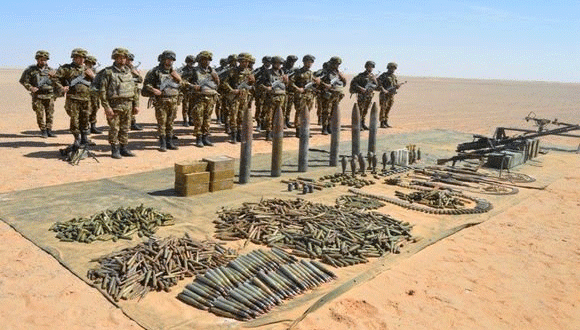 وأوضح نفس المصدر أنه “في إطار مكافحة الإرهابي ضبطت مفارز للجيش الوطني الشعبي، يوم 01 سبتمبر 2018 بكل من برج باجي مختار وعين قزام/ن.ع.6، بندقيتين (02) نصف آليتين من نوع سيمونوف ومسدس آلي و 7 كيلوغرام من المتفجرات (TNT) وكمية من الذخيرة، في حين كشفت ودمرت مفرزة أخرى سبعة (07) قنابل تقليدية الصنع إثر عملية بحث وتمشيط بالمدية/ن.ع.1”.
