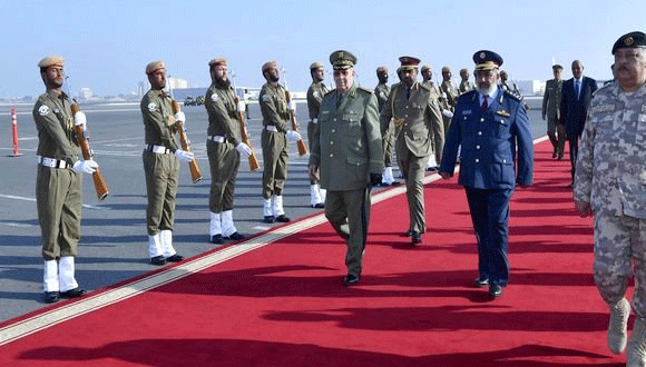 و أوضح بيان لوزارة الدفاع الوطني أن الفريق قايد صالح استقبل لدى وصوله بالتشريفات العسكرية من طرف الفريق الركن غانم بن شاهين الغانم رئيس أركان القوات المسلحة القطرية.