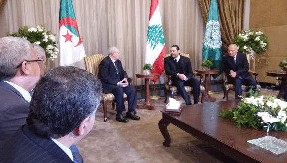 وكان في استقباله بمطار بيروت الدولي رئيس الوزراء اللبناني المكلف، سعد الحريري، والامين العام لجامعة الدول العربية، أحمد أبو الغيط.