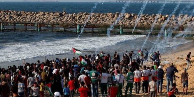 اصيب عدد من الفلسطينيين امس عندما قمعت قوات الاحتلال الاسرائيلي المشاركين في المسير البحري الثاني والعشرين شمال غربي قطاع غزة، بعشرات ألاف المشاركين المحتجين السلميين تتجدد المسيرات البحرية الفلسطينية شمال قطاع غزة.