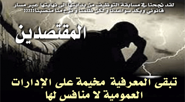 وقال المقصيون في بيان لهم :”في سابقة أولى خطيرة وغريبة من نوعها،تعرضنا نحن الناجحون في مسابقة التوظيف وشغل منصب نائب مقتصد بمؤسسات قطاع التربية بولاية سكيكدة، الى التفاف على القانون وإقصائنا بطريقة غامضة وتعسفية، وبتواطؤ ما بين المديرية الولائية للوظيف العمومي ومديرية التربية بالولاية،متنكرين لظروفنا الاجتماعية وحالتنا النفسية،بل ولكل قيمة إنسانية”.وأضافوا أنهم نجحوا لقد في مسابقة التوظيف من بدايتها إلى نهايتها عبر مسار قانوني ثم أنهوا تربص ما قبل الالتحاق بالمنصب،لتتدخل في آخر لحظة إرادة الأمر الواقع ونزعة الاستئثار بالمنصب والمسؤولية،وزجت بهم إلى نقطة الصفر ضاربة عرض الحائط بمصداقية المسابقة وسمعة مؤسسات الدولة، وما تتطلبه من احترام للقانون وتكريس مبدأ التنافس الشريف في شغل الوظائف.كما أكدوا أنهم تقربوا من كل من مصالح الوظيفة العمومي ومديرية التربية بالولاية للحصول على إجابات مقنعة،لكن سياسة التجاهل وصد الأبواب، طغت وفرضت منطق الأمر الواقع رغم التضامن الواسع الذي لقوه من مختلف فئات المجتمع ومنظمات حقوقية وإنسانية.وشددوا على رفضهم لأن يكونوا كبش فداء لأية تداخلات أخرى غير شروط المسابقة المعلنة في وسائل الإعلام وعلى أساسها تقدمتا للمشاركة فيها،معلنين عن تمسكهم بحقهم في المناصب التي فازوا بها بجهدهم بعد سنوات من الصبر والمعاناة.