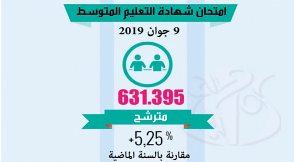 ويقدر العدد الإجمالي للمترشحين لهذا الامتحان الذي من المنتظر الاعلان عن نتائجه في الفاتح يوليو المقبل، 631.395 مترشح، أي بزيادة قدرها 5.25 بالمائة ، مقارنة بالسنة الماضية التي سجلت 595.865 مترشحا، حسب الارقام التي قدمتها وزارة التربية الوطنية.