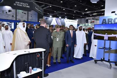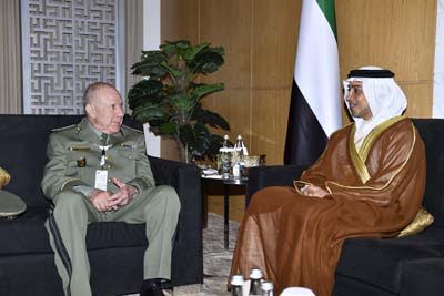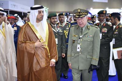 وبقصر المعارض، كان اللواء سعيد شنقريحة في مقدمة رؤساء الوفود التي استقبلها راعي الحفل صاحب السمو الشيخ منصور بن زايد آل نهيان، نائب رئيس مجلس الوزراء، وزير شؤون الرئاسة لدولة الإمارات العربية المتحدة، حيث أبلغه تحيات عبد المجيد تبون رئيس الجمهورية القائد الأعلى للقوات المسلحة، وزير الدفاع الوطني الذي يحرص كل الحرص على توطيد التعاون الأخوي بين البلدين بما يتوافق فعليا مع تطلعات الشعبين الشقيقين، كما طاف اللواء رفقة سمو الشيخ منصور بن زايد آل نهيان بمختلف أجنحة المعرض،و كان له بعد ذلك لقاء رسمي مع صاحب السمو الشيخ منصور بن زايد آل نهيان، نائب رئيس مجلس الوزراء، وزير شؤون الرئاسة لدولة الإمارات العربية المتحدة حضره عن الجانب الجزائري سفير الجزائر بأبوظبي وملحق الدفاع وأعضاء الوفد المرافق للسيد اللواء، وعلى الجانب الإماراتي كل من اللواء فارس المزروعي وزير الدولة مستشار الشؤون الرئاسية لدولة الإمارات سهيل المزروعي وزير الصناعة والطاقة ،ومحمد أحمد البواردي كاتب الدولة لشؤون الدفاع، وهو اللقاء الذي استعرض خلاله الطرفان حالة التعاون بين جيشي البلدين خاصة في مجال الصناعات العسكرية التي شهدت تطورا ملحوظا والتي تمثل نموذجا ناجحا للتعاون بين البلدين الشقيقين