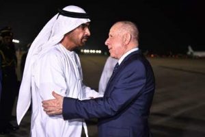 اللواء شنقريحة ولدى وصوله إلى مطار أبو ظبي استقبل من قبل اللواء فارس المزروعي وزير الدولة مستشار الشؤون الرئاسية لدولة الإمارات العربية المتحدة، حسب ما أفاد به بيان لوزارة الدفاع الوطني.