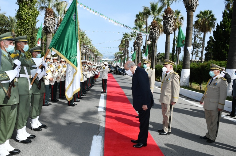 تتويجا لحفلات التخرج السنوية للدفعات بمؤسسات التكوين للجيش الوطني الشعبي، أشرف السيد رئيس الجمهورية، القائد الأعلى للقوات المسلحة، وزير الدفاع الوطني صباح اليوم السبت 22 أوت 2020 بالأكاديمية العسكرية لشرشال “الرئيس الراحل هواري بومدين”، على مراسم تخرج الدفعة الثالثة عشر (13) من التكوين العسكري القاعدي المشترك، والدفعة الحادية والخمسين (51) من التكوين الأساسي، والدفعة الرابعة (04) لضباط دورة الماستر.