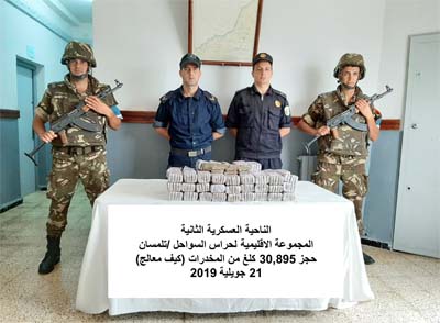 أوقفت مفارز للجيش الوطني الشعبي ومصالح الدرك الوطني وحرس الحدود، خلال عمليات متفرقة بكل من النعامة وتلمسان ووهران وغليزان والطارف والوادي وبسكرة وباتنة وسوق أهراس وتبسة وسيدي بلعباس وعين أمناس، 33 تاجر مخدرات وحجزت ثلاثة قناطير و10.7 كيلوغرام من الكيف المعالج و25154 قرص مهلوس، فيما تم توقيف شخصين بحوزتهم 18.54 طن من مادة التبغ بكل من الوادي وسطيف وبومرداس، كما تم حجز 87980 وحدة من الألعاب النارية بسطيف.