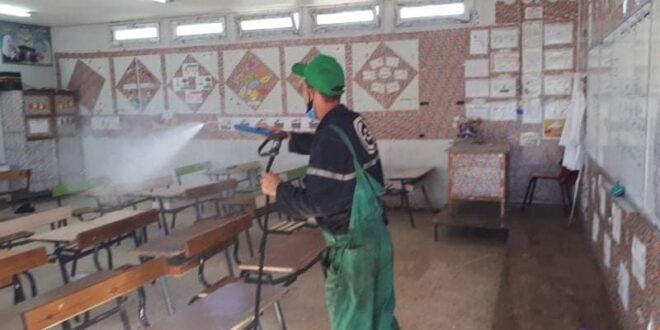 انطلقت السلطات المحلية رفقة مؤسسة النظافة مدينة نات بولاية بومرداس في عمليات تعقيم كبرى مست عدد معتبر من المؤسسات التربوية بالإضافة إلى الإدارات وغيرها من الهياكل الخدماتية التي تعرف حركة كثيفة داخلها للمواطنين كإجراء وقائي من كوفيد 19 خاصة في هذه الأيام التي يتواصل فيه ارتفاع عدد الحالات المصابة.