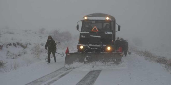 وجاء ذات البيان “على إثر التقلبات الجوية الأخيرة بالولايات الشرقية للوطن والتي عرفت تساقط كميات معتبرة من الثلوج، تدخلت مفارز للجيش الوطني الشعبي على مستوى بلدية لارباع بالقطاع العسكري باتنة بالناحية العسكرية الخامسة، لفتح المسالك والطرق وفك العزلة على المواطنين على طول الطريق الرابط بين منطقتي لارباع وتقصريت، باستعمال آليات ومعدات تم تسخيرها لهذا الغرض”.