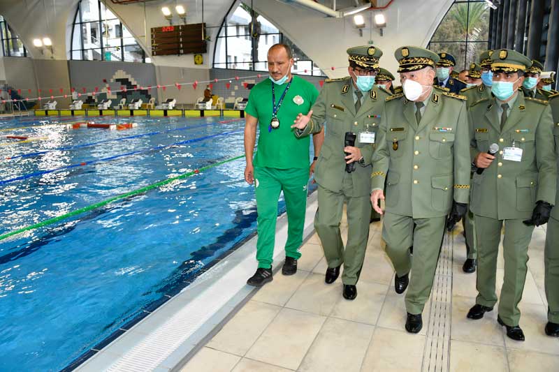 كما تابع الفريق بعد ذلك عرضا شاملا حول الرياضة العسكرية قدمه رئيس مصلحة الرياضات العسكرية بدائرة الاستعمال والتحضير لأركان الجيش الوطني الشعبي وكذا عرض حول المسبح الأولمبي الجديد، هذه المنشأة التي أولت لها القيادة العليا للجيش الوطني الشعبي كل الرعاية اللازمة من أجل تجهيزها بكافة التجهيزات الرياضية الحديثة، وفق المعايير العالمية المعمول بها في هذا المجال، من أجل توفير الظروف اللائقة لتحضير رياضيينا العسكريين في أحسن الظروف والمساهمة في تحقيق نتائج ممتازة على الصعيدين الوطني والدولي، تليق بسمعة الرياضة العسكرية في الجيش الوطني الشعبي.
