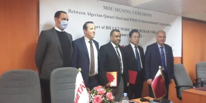 تم أمس، توقيع اتفاقية شراكة بين مجمع ايمتال للحديد والصلب، مع مؤسسة التجارة العالمية posco الكورية، الهدف منها تصدير المنتوج الجزائري من الحديد إلى الخارج.