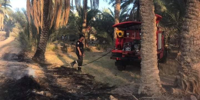 وقد ساهمت التيارات الهوائية القوية التي كانت تهب على المنطقة في سرعة امتداد السنة اللهب مما أدى بمصالح الحماية المدنية الى الاستعانة بتسع شاحنات اطفاء و35 عونا تابعين لمختلف وحداتها المتواجدة بالمنطقة من أجل السيطرة على الحريق والحيلولة دون امتداداه الى باقي اشجار النخيل على مستوى واحات النخيل المجاورة، مثلما اشير اليه.