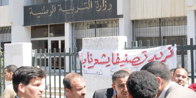 وجاء في بيان للمحتجين، أنه “وفي ظل الظروف الصعبة التي يعيشها موظفو وعمال قطاع التربية بفعل التدني الرهيب للقدرة الشرائية والتماطل والتسويف غير المبرر في صبّ المخلفات المالية، وأمام التأخر الكبير في إصدار قائمة المهن الشاقة، التي من المفترض أن يتم فيها إدراج قطاع التربية، فإن كل منتسبي قطاع التربية يرفضون الوضع الحالي والمطالبة بضرورة صبّ كل المخلفات المالية العالقة وتمكين الأساتذة المتعاقدين من والمستخلفين من كل مستحقاتهم المالية في أقرب وقت، حيث أن جميعهم أصبح يبحث عن عمل بديل وقت الراحة للحصول على قوت عياله وأولاده، وبعضهم شرع في بيع أثاث بيته من أجل توفير الطعام لأهله، كما طالب المحتجون برفع النقطة الاستدلالية لتحسين القدرة الشرائية،وإعادة النظر في المناهج والبرامج التعليمية، وإلغاء الضريبة على الدخل، وتفعيل منحة الأعياد والمناسبات، وإدماج الأساتذة المتعاقدين، وعودة التقاعد النسبي ومن دون شرط السن، كون التعليم من المهن الشاقة كذلك”.