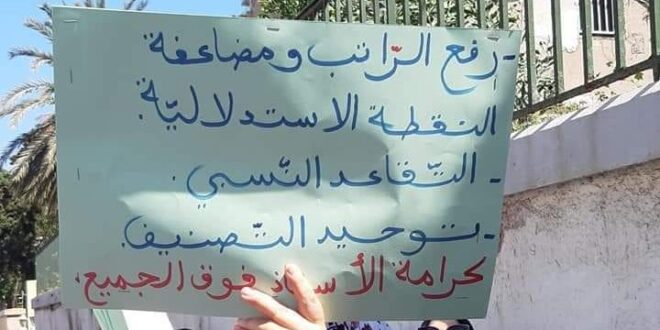 وجاء في بيان لـ”الكنابست” ، أن “الواقع السوسيو-مهني للأستاذ وصل إلى أدنى المستويات، مما يستوجب اتخاذ إجراءات عملية عاجلة وقرارات جريئة تسمح بتدارك التراكمات التي لازال يشهدها الانخفاض الرهيب للقدرة الشرائية”