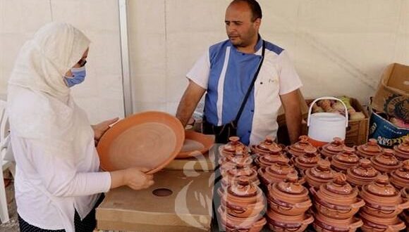 وتتنوع معروضات الحرفيين بين أواني فخارية ومنسوجات وألبسة تقليدية وحلي وأفرشة وحلويات تقليدية وعصرية إلى جانب تحف فنية وأواني نحاسية.