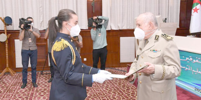 وأورد الفريق “يطيب لي على إثر النتائج الممتازة التي حققتموها في شهادة البكالوريا وشهادة التعليم المتوسط لدورة جوان 2021، أن أنقل إليكم تهاني وتبريكات رئيس الجمهورية، القائد الأعلى للقوات المسلحة، وزير الدفاع الوطني، كما أتقدم لكم بدوري، ومن خلالكم إلى كافة زملائكم الذين تمكنوا من نيل هاتين الشهادتين، بالتهاني الخالصة على هذا الإنجاز المتميز، الذي يضاف إلى سلسلة الإنجازات والنجاحات، التي ما فـتـئ يحققها الجيش الوطني الشعبي على كافة الأصعدة والمجالات”.