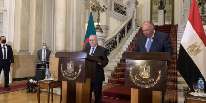 اتفق رمطان لعمامرة وزير الشؤون الخارجية والجالية بالخارج رمطان لعمامرة، رفقة نظيره المصري سامح شكري، على ضرورة التوصل إلى تسوية سلمية وسياسية للأزمات والنزاعات التي تؤثر على استقرار منطقة المغرب العربي ومنطقة الساحل والصحراء والقرن الأفريقي.